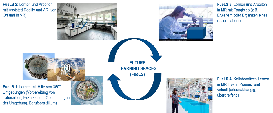 Depending on the scenario and requirements, physical and digital spaces and elements are mixed together. For example, AR can be used to add digital information and learning content on demand to a laboratory or to support on-site action sequences with the help of assisted reality approaches.